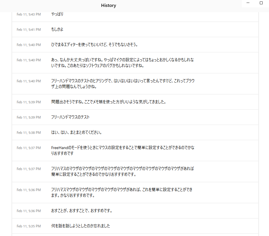 フォーカスが外れてテキストが入らない問題。これがあるので、Historyウィンドウは常時表示推奨。