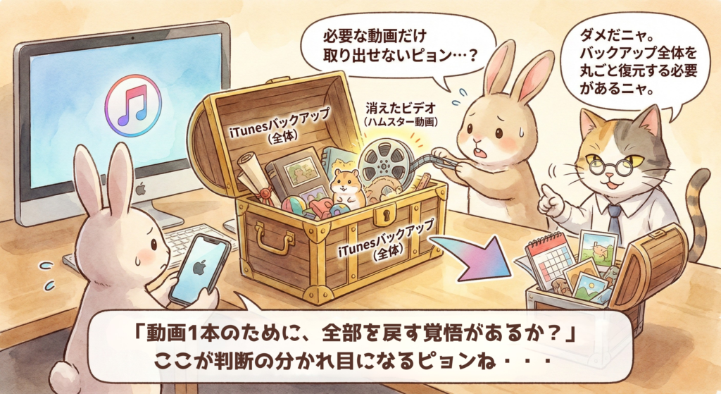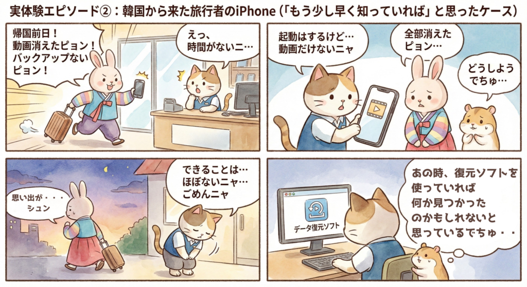 実際の現場では、「動画は戻ったが、最近撮った写真が消えた」というケースも少なくありません。“今”を犠牲にして“過去”を取り戻す選択になるため、慎重な判断が必要です。