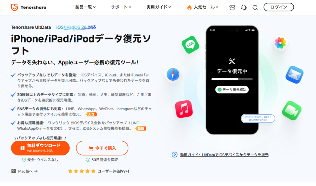 - 2 2. UltData for iOSの特徴・機能