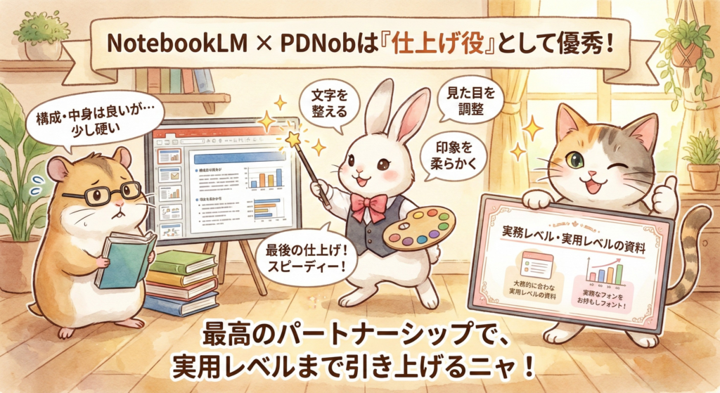 NotebookLM × PDNobは「仕上げ役」として優秀