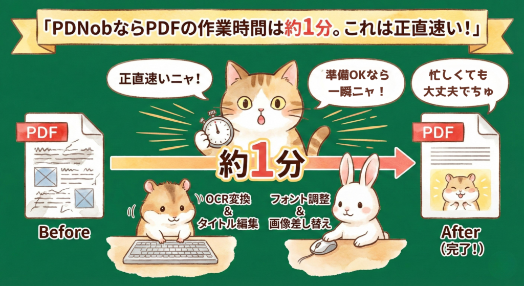 といった 最後の仕上げ が、驚くほどスピーディーに行えました。NotebookLMで作った資料を、実務レベル・実用レベルまで引き上げるツールとして、PDNobは非常に相性が良いと感じています。