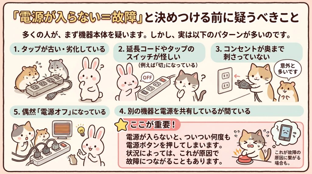 「電源が入らない=本体故障」と決めつける前に疑うべきもの