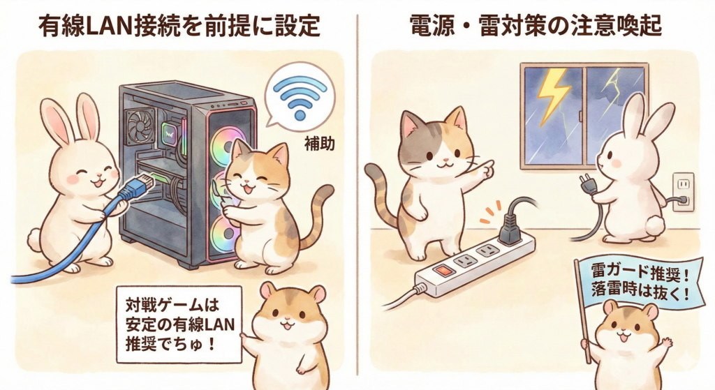 対戦ゲームは回線の安定性が重要なため、有線を基本にしています