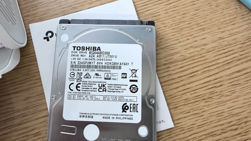 今回、Tapo H500には 2TBのHDD を搭載しました。運用状況は以下の通りです。