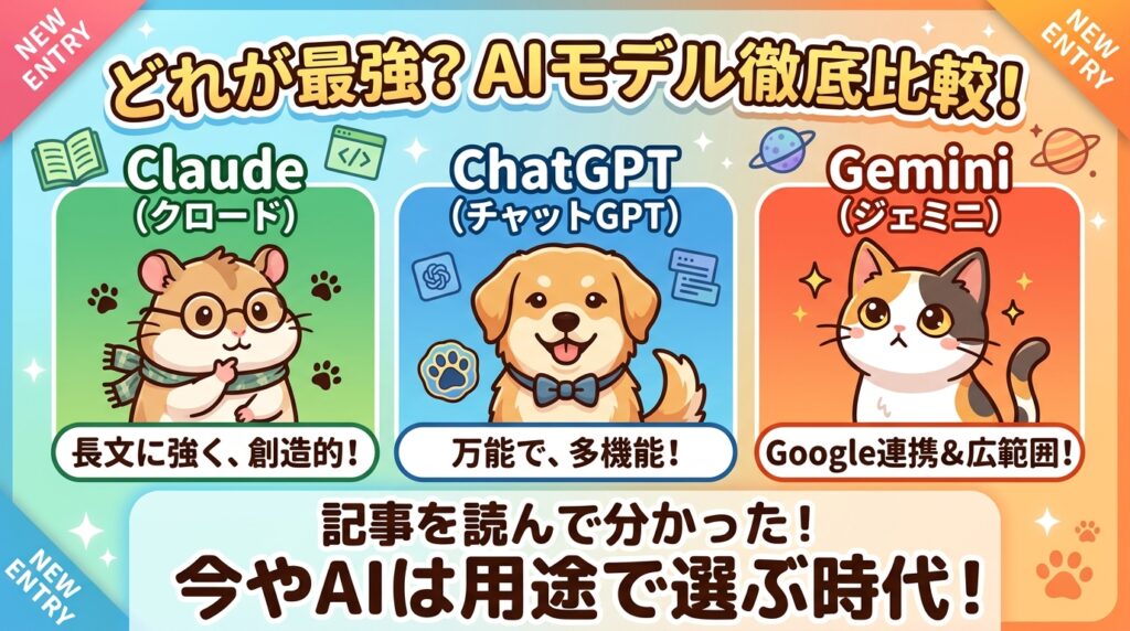 だからこそ、これからAIを選ぶ人は、名前の強さではなく、自分が何をやりたいのか。そこから逆算して選んだほうが、たぶん失敗しません。