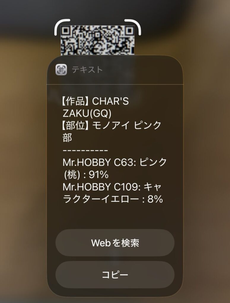 こちらは 調色レシピをQRコード化 したものです。